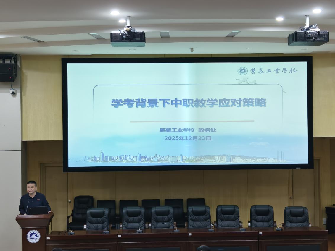 为进一步加强家校联系,凝聚育人合力,共同促进学生全面发展,2025年12月23日下午,集美工业学校2025年家长会在敬贤楼二楼报告厅隆重召开。本次会议旨在搭建家校沟通桥梁,共商学生成长大计。校长陈瑞锦、副校长黄晓锋、教务处主任孙跃岗、学生处主任吴锦欢、学生处副主任陈桢楷副主任黄斌出席会议。会议由学生处吴锦欢主任主持。