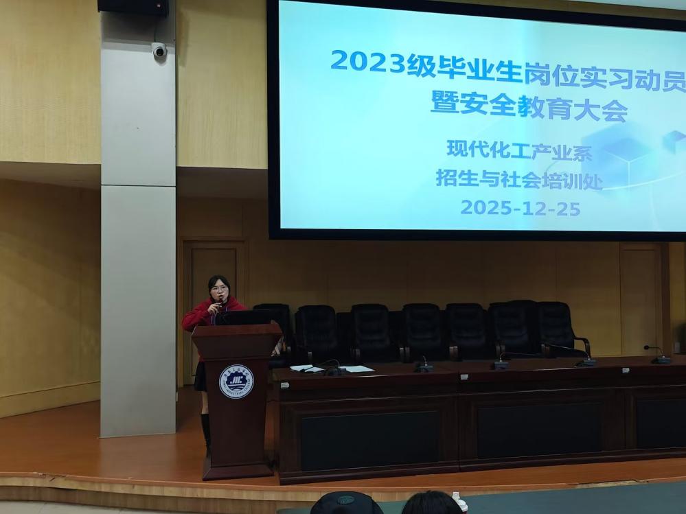 2025年12月25日,现代化工产业系成功举办了本年度23级学生岗位实习工作会议,为即将踏上实习征程的学子们指明了方向,注入了动力。此次会议由系主任吴群明与副主任刘燕頔共同组织,不仅汇聚了23级班主任、实习指导老师及全体同学,还邀请了招生与社会培训处许雪琴老师,共同为学子们的实习之路保驾护航。