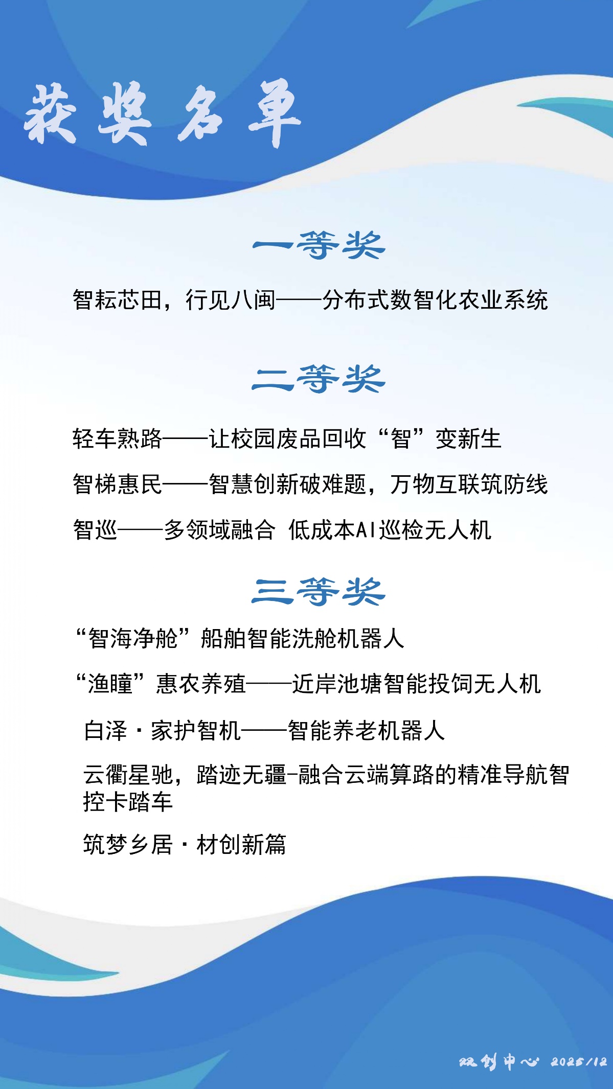 来自学院首届高职生的多支参赛队伍,历经初赛、复赛的层层筛选与严格考核,最终8支队伍脱颖而出,登上决赛路演舞台。8个优质项目覆盖智能制造、农业科技、养老服务、环保创新等多个领域,以多元创新的方案设计,充分展现学院学生的实践智慧与社会担当。其中,“智耘芯田,行见八闽——分布式数智化农业系统”凭借突出的创新性与落地性,成功斩获大赛一等奖。