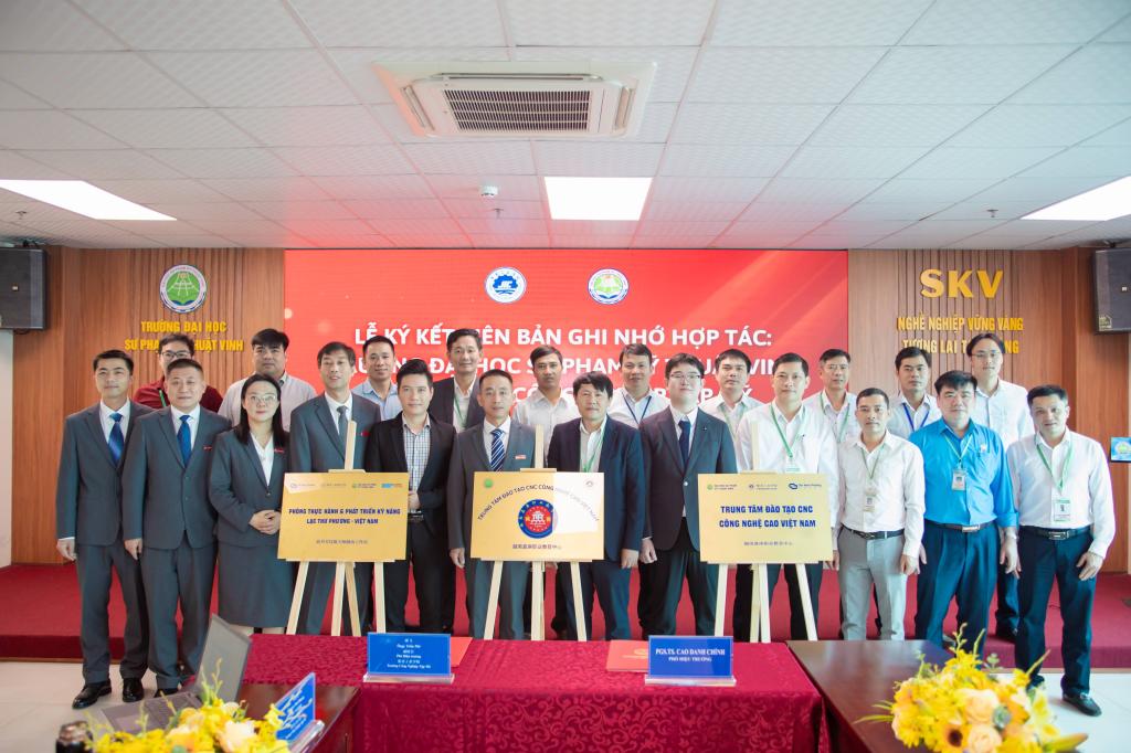 12月24日,代表团赴义安省荣市技术师范大学参加越南嘉庚职教中心签约暨揭牌仪式。荣市技术师范大学校长范友传博士对代表团的到访表示热烈欢迎,双方共同签署合作备忘录,集美工业学校、荣市技术师范大学、长盈精密(越南)、诚毅新南方(越南)四方联合为越南嘉庚职业教育中心揭牌。该中心的成立,标志着中越职业教育合作进入实质性推进阶段,为两国学生提供实习实践、职业规划、就业对接等全方位支持,助力提升人才培养质量与社会服务能力。
