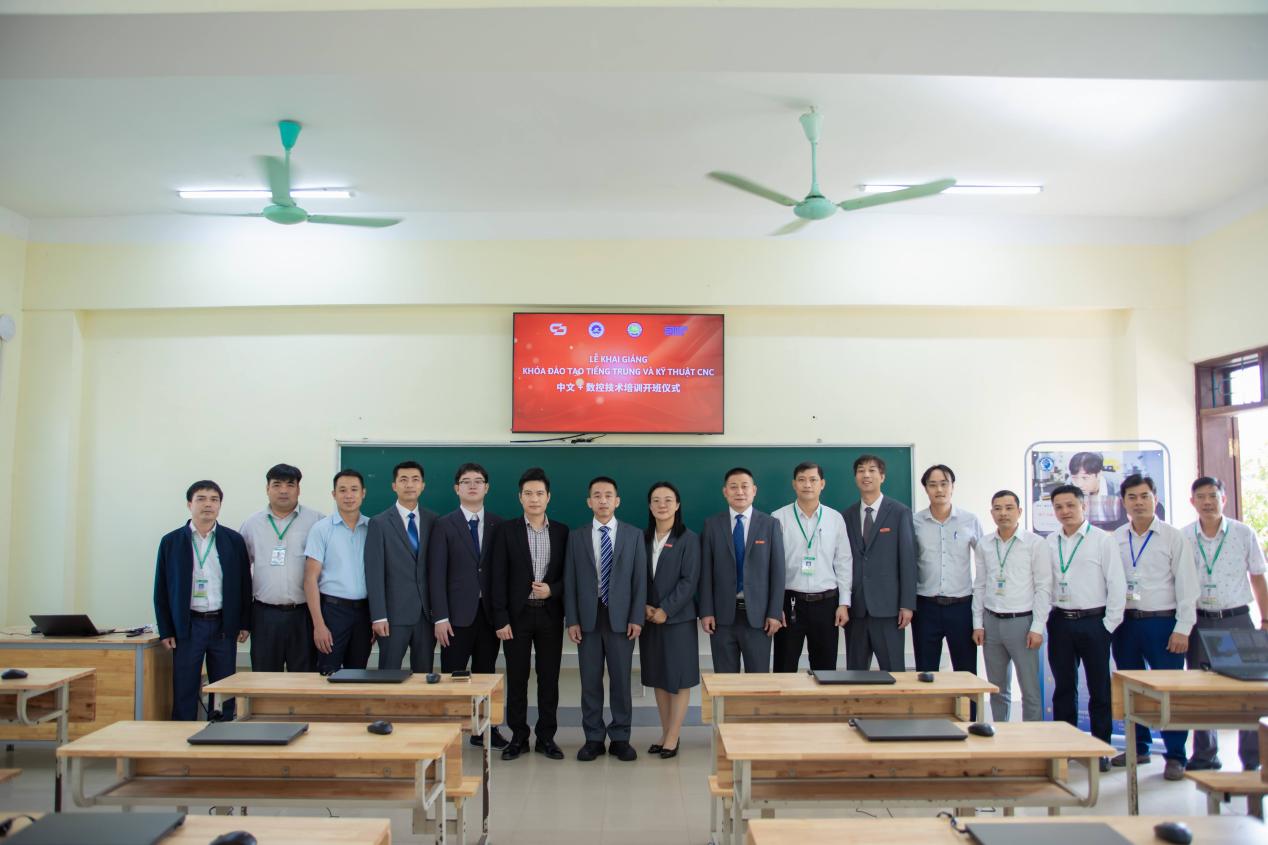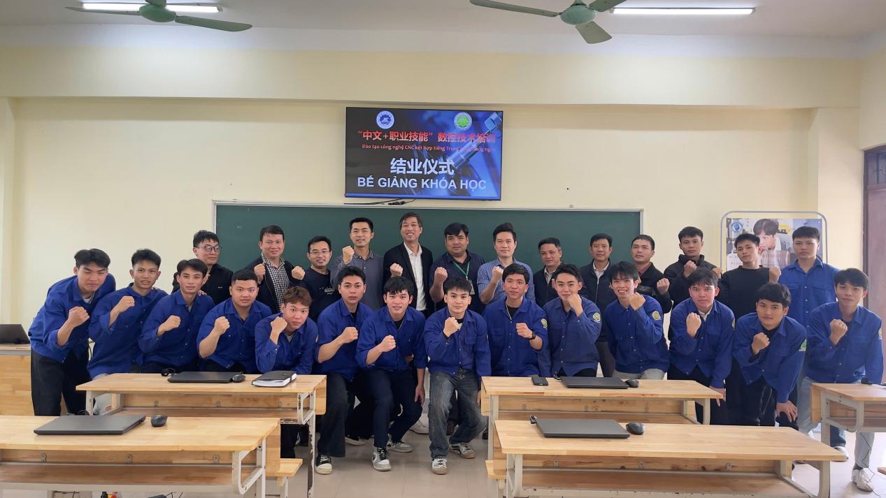 讲座结束后,举行数控编程与操作开班仪式,明确培训课程体系、教学安排与考核标准,来自该校机械、自动化等专业学生以及长盈精密(越南)技术有限公司员工等近50余名学员参训,标志着“中文+数控编程”专项培训项目全面启动。