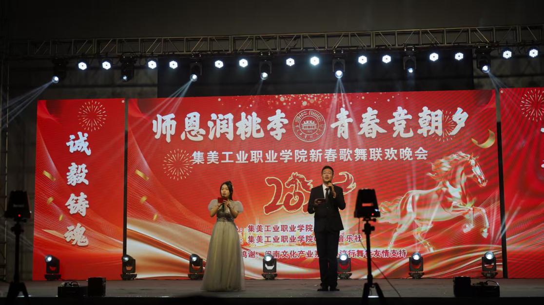 骏马踏春启新程,歌舞传情暖校园。2026年1月8日晚,集美工业职业学院“师恩润桃李,青春竞朝夕”2026新春歌舞联欢会圆满落幕,全校师生以歌声叙情谊、以舞姿展青春,在热烈欢快的氛围中共迎新春佳节。