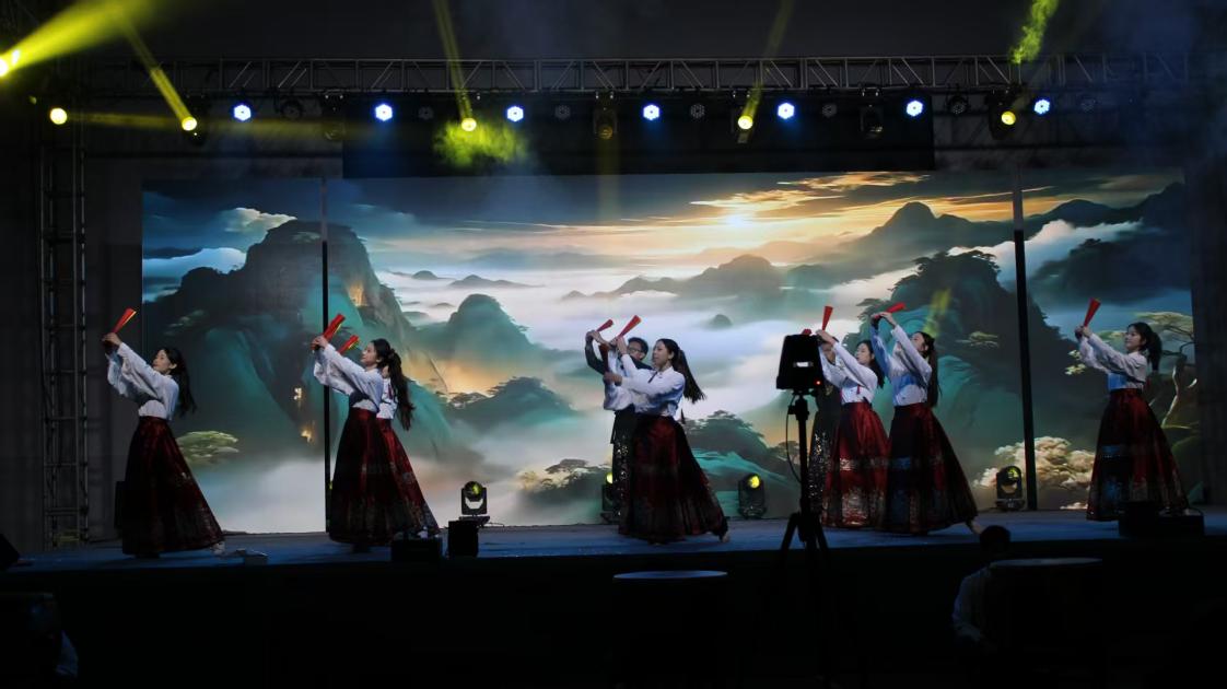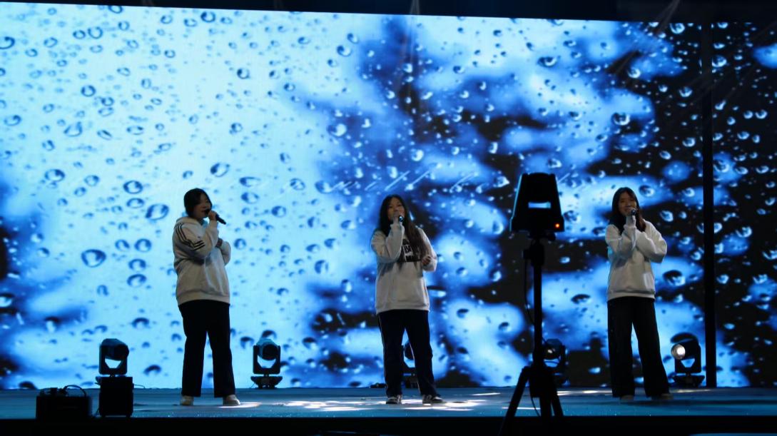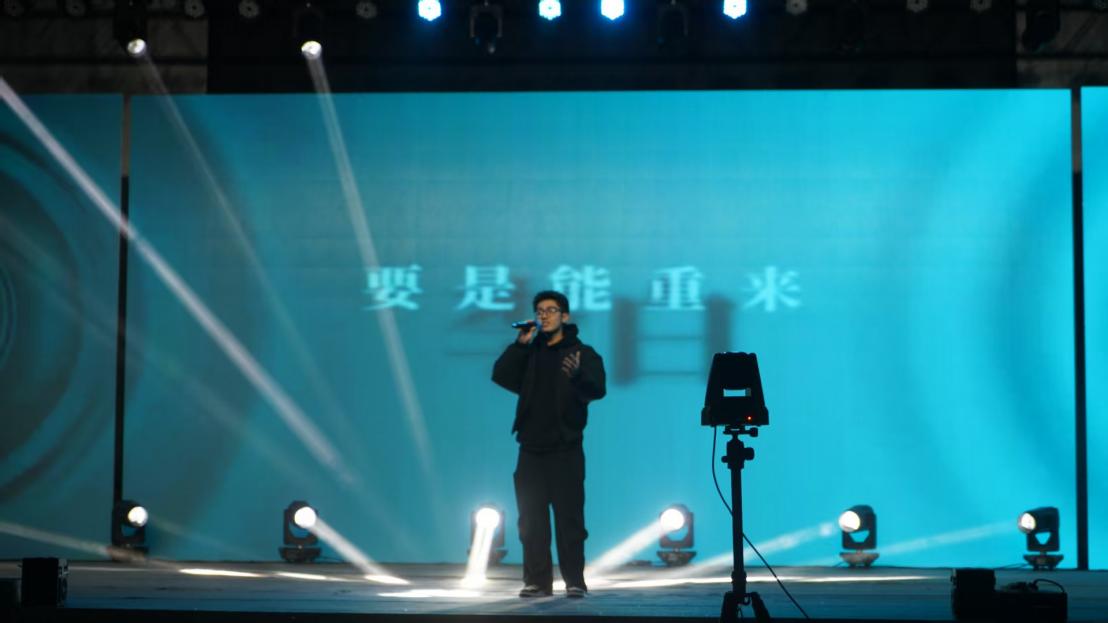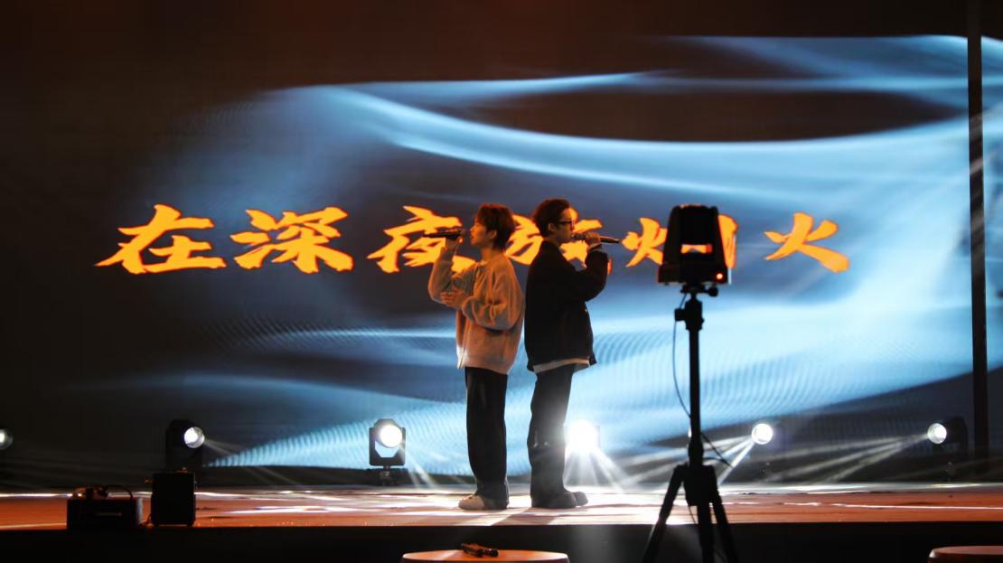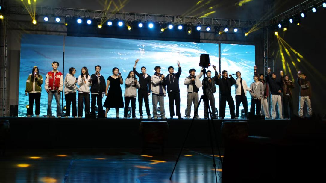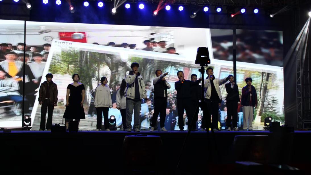 晚会的温情时刻,当属《朋友》师生重唱环节——周亚雄教官、吕澎老师与学生代表同台合唱,沉稳与清亮的声部交织,将师生间的默契与情谊融入旋律;最终,全体师生共同唱响《海阔天空》,歌声里既有青春的热忱,也有对校园时光的珍视,为联欢会画上圆满句号。