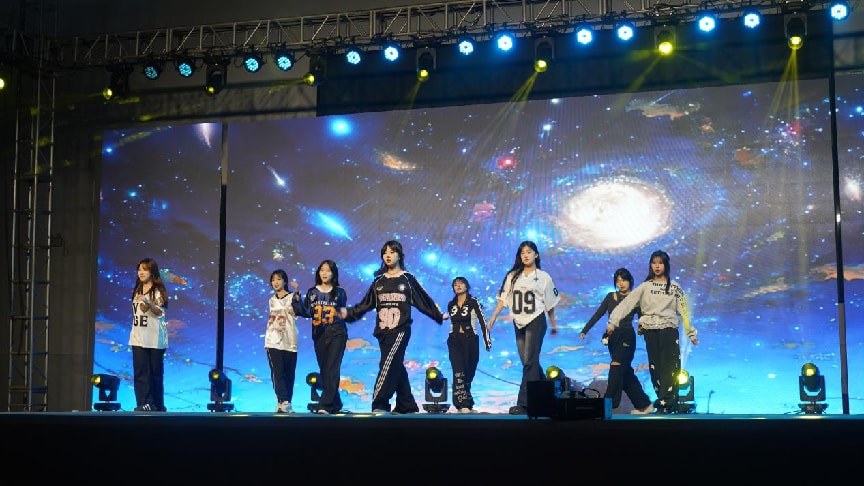 第三篇章“新岁序开・共赴未来”把联欢会推向高潮,《集韵成美・舞动万疆》《Blaze Queen》等舞蹈节目风格各异、模特走秀《锦裳辞·岁华新》精彩纷呈,小品《总裁请就诊》用幽默剧情引发全场爆笑,《集工舞韵・丝路华章》再次呼应开篇主题,在时空交错中诉说学校的文化传承。最后,全场师生共同唱响《向光而行》,熟悉的旋律里满是对新一年的期盼与祝福。