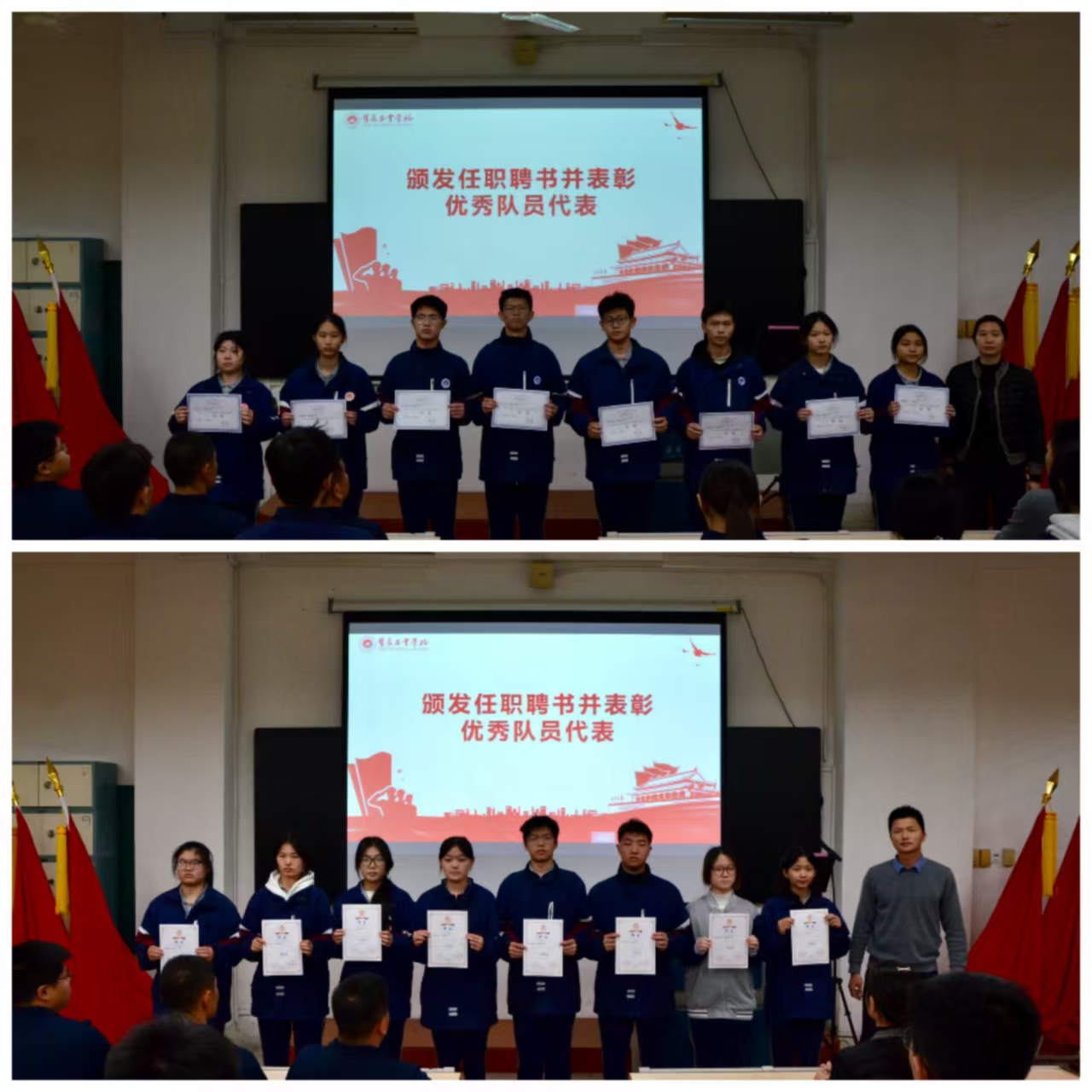 表彰环节,现场为各部门新一届干部颁发任职聘书,为优秀队员代表颁发荣誉证书。一份份聘书,是责任与使命的象征;一张张证书,是对过往努力的肯定与嘉奖。受到表彰的同学手持荣誉倍感荣幸,也为全体成员树立了学习的榜样,进一步激发了各组织争先创优、勇担使命的工作热情。
