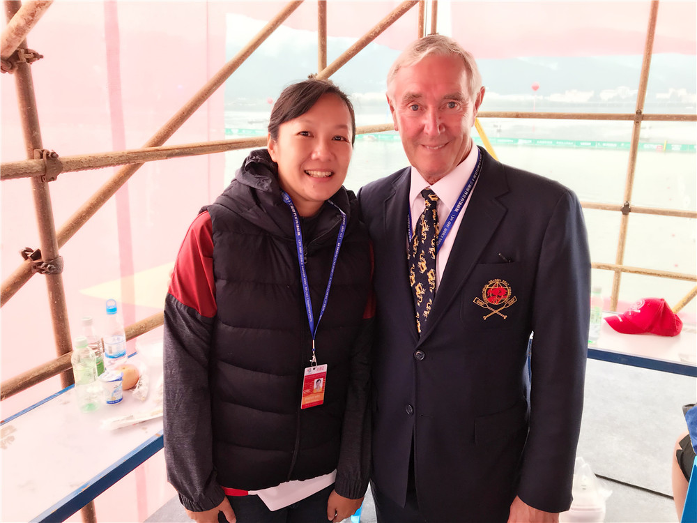 郑炜老师与国际龙舟联合会主席麦克•托马斯合影。