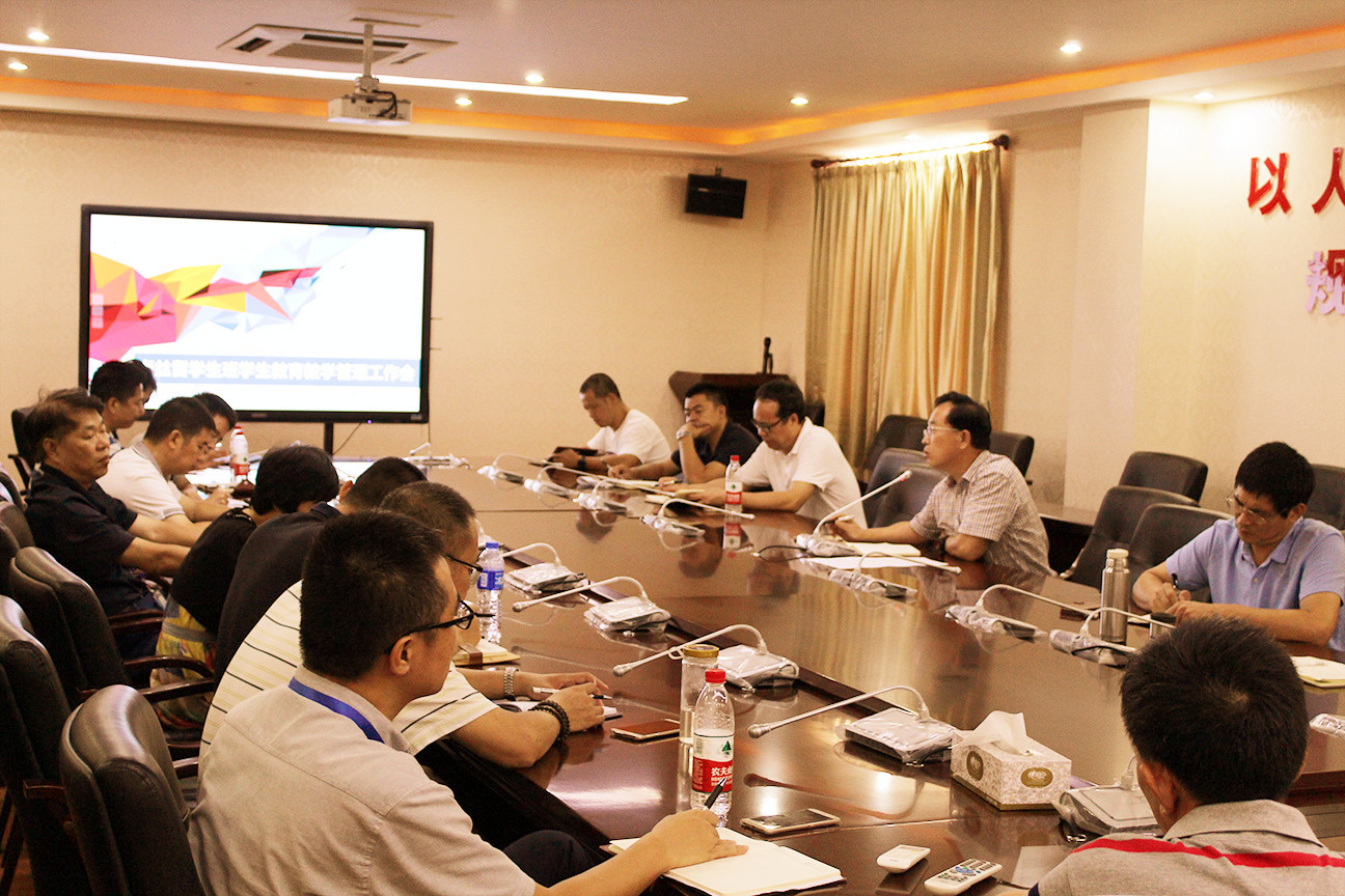 (文:陈志雄,庄少鹏,图:庄少鹏)9月19日下午,海丝留学生班学生教育教学管理工作会议在北校区诚智楼六楼会议室召开。陶顺生校长、王培元副校长、周学庆副书记、谢东升副校长、李昌彧副校长、陈瑞锦副校长出席会议,来自八大行政处室、基础教学系、校团委的中层干部,海丝留学生班班主任参加会议。陶校长主持会议。