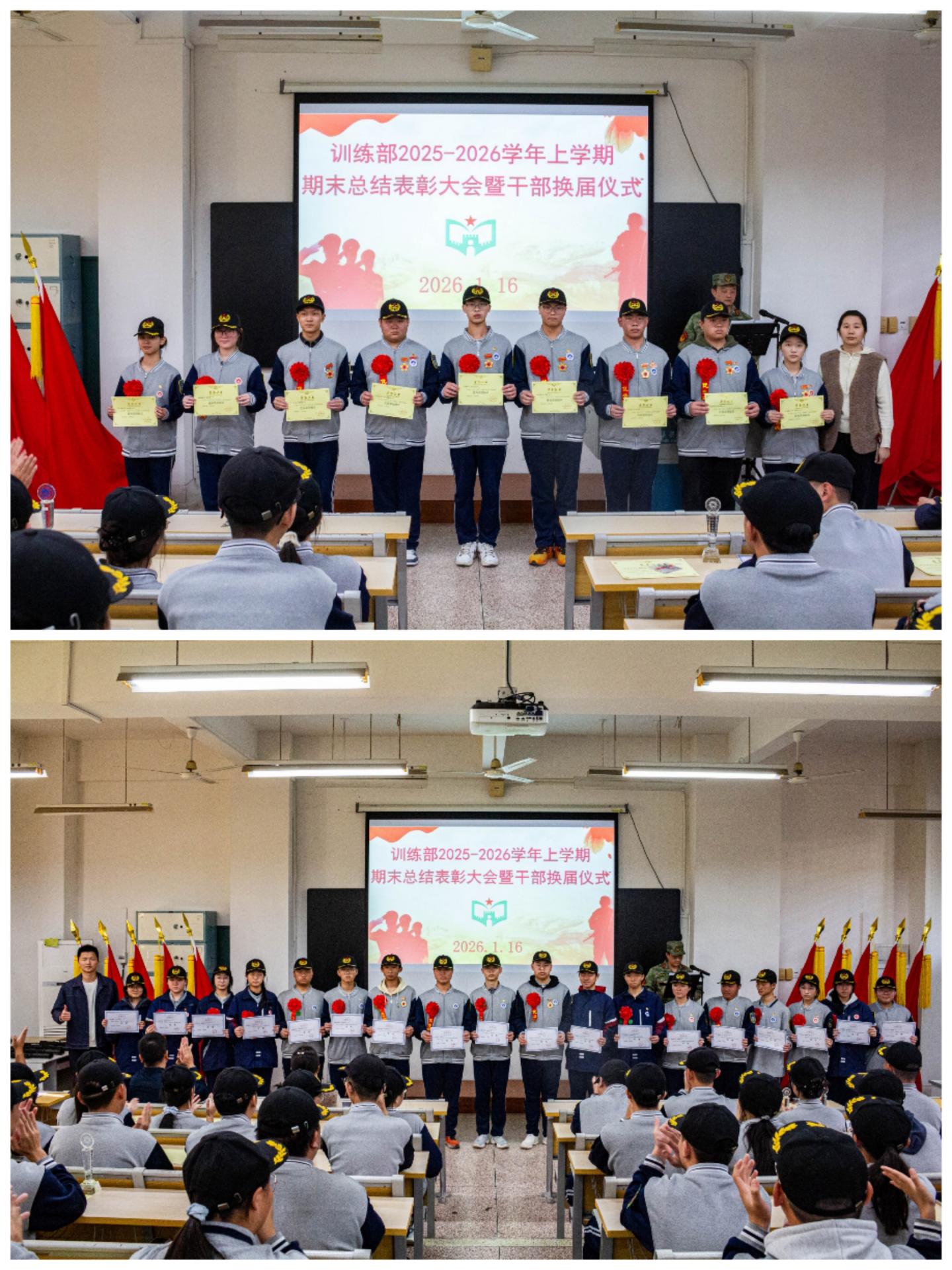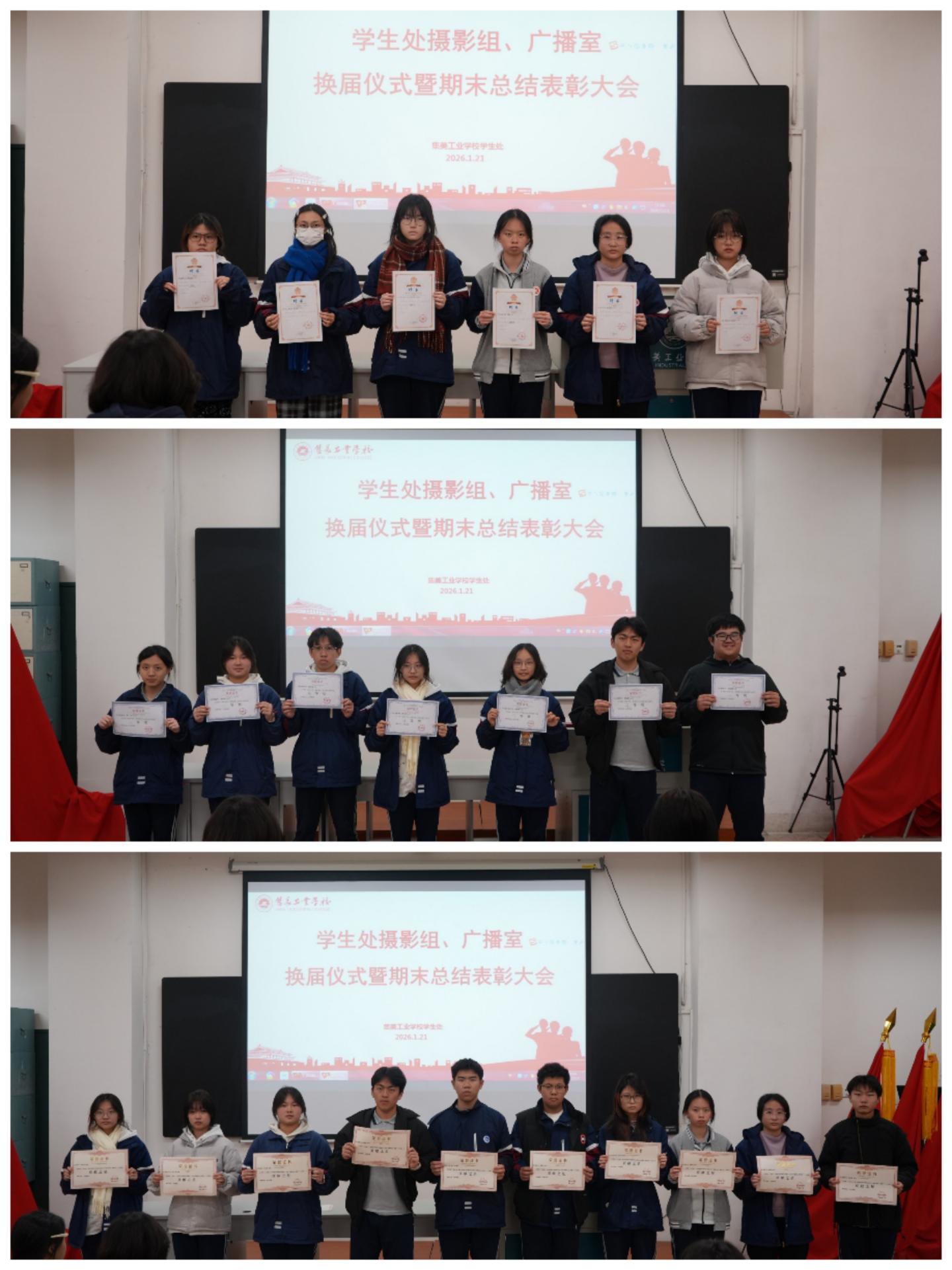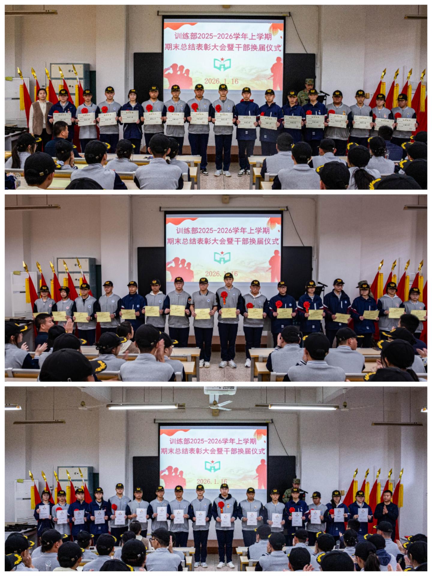 此次学生处下属各学生组织期末表彰暨换届大会的圆满举行,进一步凝聚了组织力量、明确了工作方向。相信在学校的悉心指导下,在新任干部的带领下,国旗队、训练部、体育部、摄影组、广播室全体成员必将不负重托、砥砺前行,以更坚定的信念、更务实的作风、更昂扬的姿态投入到各项工作中,为校园发展注入更加强劲的青春活力。