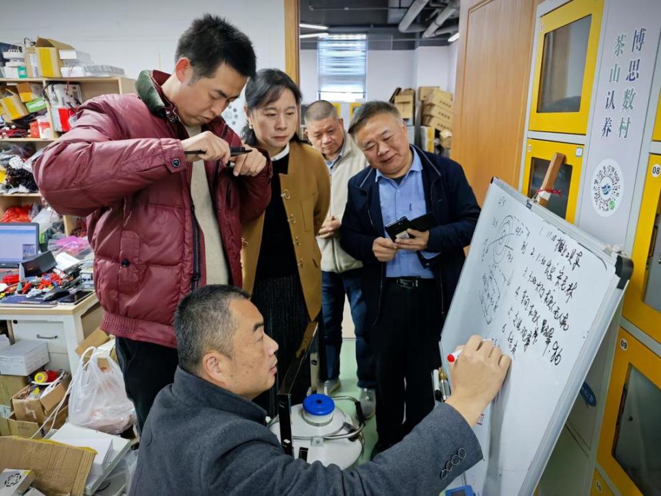 在毛时敏会长的带领下,学校领导一行参观了博思创业园和企业展示间。各类先进的机器人令人眼前一亮,采茶机器人助力农业高效生产,机器人茶具融合科技与传统,而备受瞩目的消防机器人,更是凝聚了多方智慧。这款采用液氮灭火技术的创新产品,由厦门大学、福建理工大学、江苏安全科学研究院、博思软件、宇树科技等多方强强联合研发,博思软件还向母校抛出“橄榄枝”,诚邀学校领导和教师参与其中,共同攻克技术难题。当得知毛时敏团队正在设计无人机液氮灭火装置上盖连通器时,赵丽萍书记当即表示学校有能力参与设计和加工。先进制造产业系陈世鹏主任迅速响应,现场构思、绘制图纸,第一时间发回学校安排竞赛组师生研发设计。截止发稿,无人机液氮灭火装置上盖连通器已成功寄达公司,这一成果不仅是学校专业能力的有力证明,更是校企高效协作的生动范例。