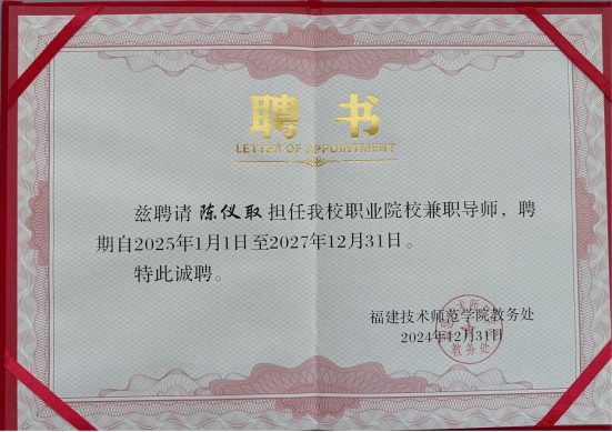 校多教师荣聘福建技术师范学院职业院校兼职导师