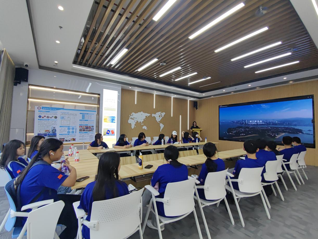 随后,营员们来到中国—东盟嘉庚职业教育交流中心参加文化推介活动。朱老师向营员们系统介绍了厦门作为高素质高颜值现代化国际化城市的文化特色与发展活力,并详细解读了集美工业学校面向国际学生设立的招生政策与交流项目。在中文培训环节,老师们以生动有趣的方式带领泰国学生进行汉语基础训练,现场互动频繁、笑声不断,语言学习在轻松愉悦的氛围中有效推进。