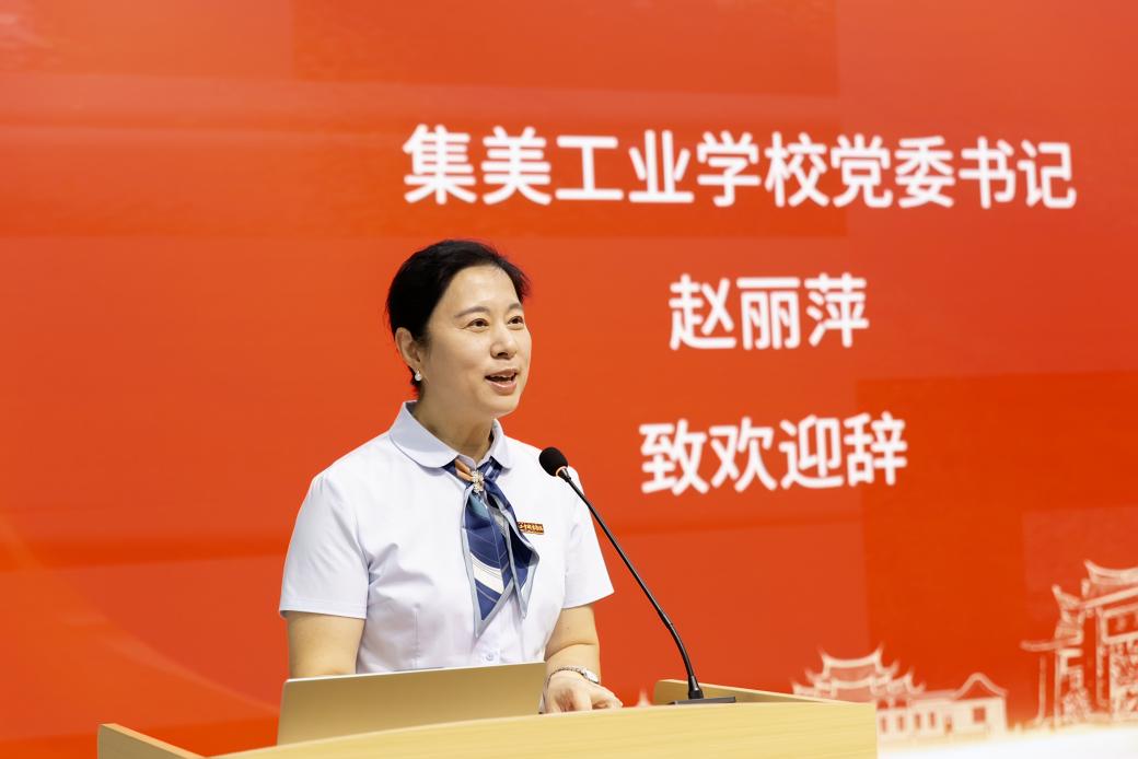我校党委书记赵丽萍代表承办方致辞。她首先向莅临会议的领导、专家和校友代表致以热烈欢迎与诚挚感谢,指出本次会议既是传承嘉庚精神的思想盛会,更是推动职业教育创新发展的重要抓手。学校将以此次会议为契机,深化嘉庚职教思想传承创新,推动其与现代职教体系深度融合,为培养“大国工匠”、服务国家战略贡献集美力量。