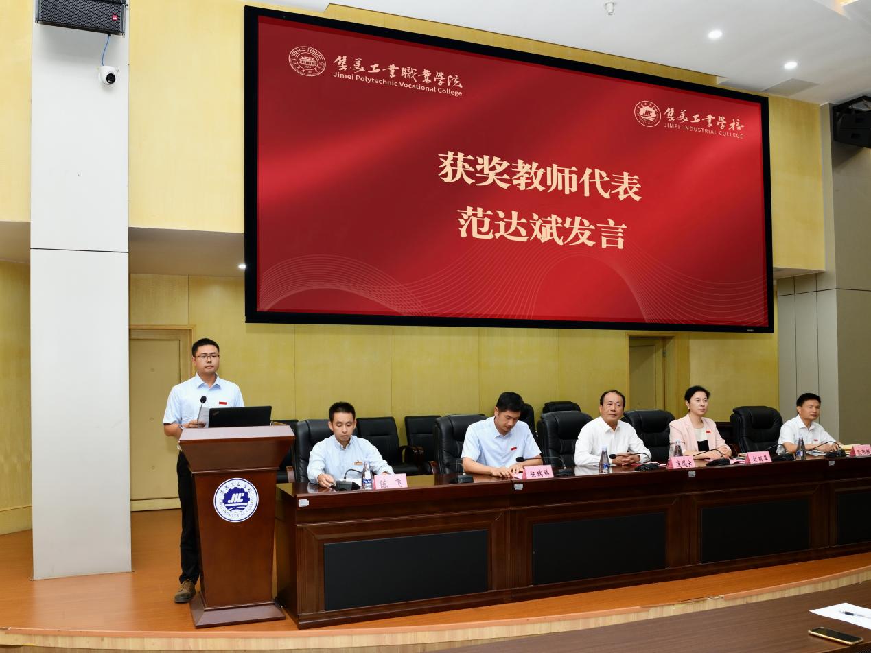 获奖教师代表范达斌在发言中表达了对学校领导和集美校友总会的衷心感谢。他结合从教五年的经历,分享了教育工作中收获的温暖与感动,并承诺将以更高热情投身教育事业,做教学创新的“拓荒牛”、学生成长的“贴心人”。