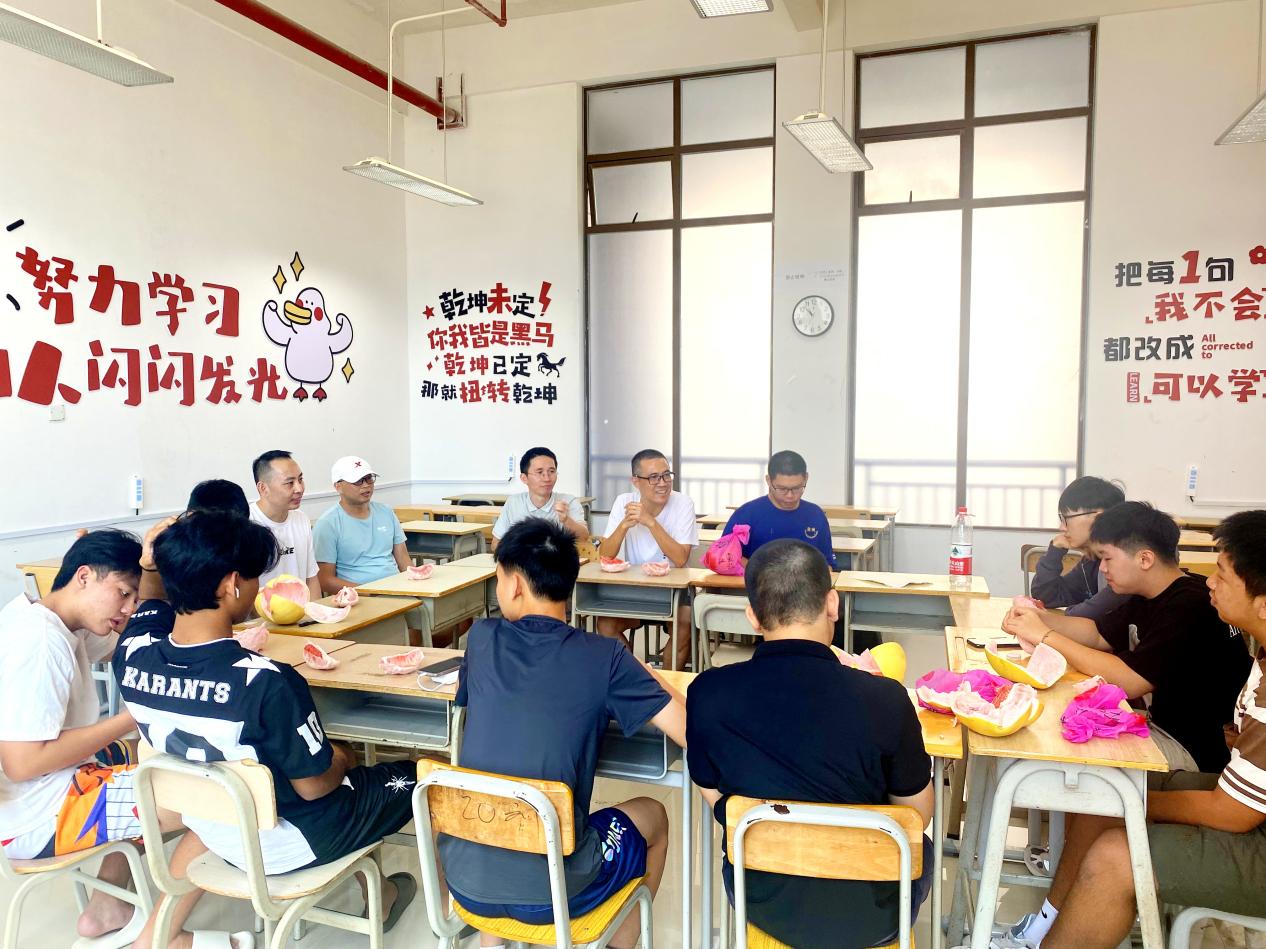 10月1日上午,基础教学系陈志雄主任邀请现就读于复旦大学的22级海丝班林枝同学重返母校,为在读的学弟学妹分享申请大学的经验与心得。分享会上,林枝同学结合自身从备考到圆梦复旦的经历,从申请材料准备、面试技巧打磨等多个维度展开讲解,实用的经验和真诚的交流让在场学生受益匪浅。陈瑞锦校长特意莅临现场,与在场师生亲切交流。他不仅肯定林枝“不忘母校,传递经验”的暖心举动,更以“以榜样为灯,明成长方向”寄语在场学子,鼓励大家锚定目标、奋力拼搏。会后陈校长与学生代表们吃月饼话中秋。小小的月饼是中国传统文化的缩影,承载着团圆的寓意,也让校友情、师生情在双节的氛围中愈发浓厚,为这个特殊的日子增添了温暖的记忆。