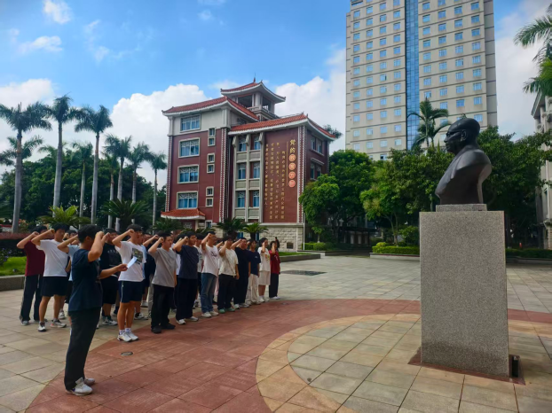 教学移出课堂,旨在通过沉浸式学习激发学生的家国情怀。学生在校园内嘉庚雕塑前郑重宣誓,承诺将传承嘉庚精神,以技能报国践行新时代青年的使命。