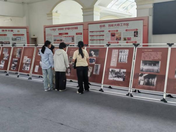 展览以棕红色为主调,泛黄的历史照片与“赤子功勋”的醒目标题相映,瞬间将师生带入那段烽火岁月。展板详细记录了1939年至1942年间,3200余名南洋华侨青年组成“南洋华侨机工回国服务团”,冒着炮火通过滇缅公路输送抗战物资的感人事迹。学生们驻足于机工队名单、运输路线图前,深刻体会到陈嘉庚先生“国家安危、匹夫有责”的号召如何凝聚起海外赤子的报国热血。