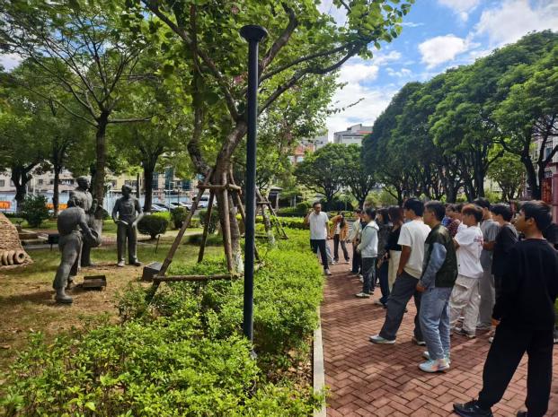 作为校主陈嘉庚先生创办的院校,此次观展成为一堂生动的“行走的思政课”。展览后学生游览校园中4组嘉庚群雕,在老师的讲解下,了解群雕背后的爱国故事,感受到“诚毅、忠公、奉献”的嘉庚精神
