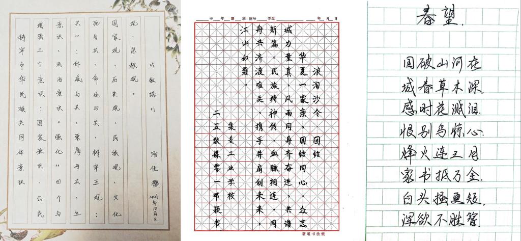在为期近一个月的活动中,同学们踊跃参与,通过“秒应”小程序提交作品电子版,并递交纸质原作至班主任处。作品评审围绕政治导向、艺术表现、书写规范三大维度展开,最终评选出一、二、三等奖若干名