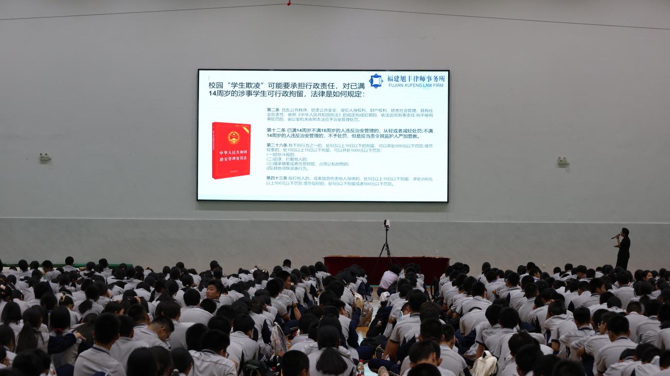 为进一步增强学生法治意识与自我保护能力,营造安全、和谐的校园环境,2025年10月28日,集美工业学校特邀福建旭丰律师事务所民事部副主任沈玉洪律师,在校体育馆为2025级全体师生带来一场以“防校园欺凌、防性侵”为主题的法治讲座。