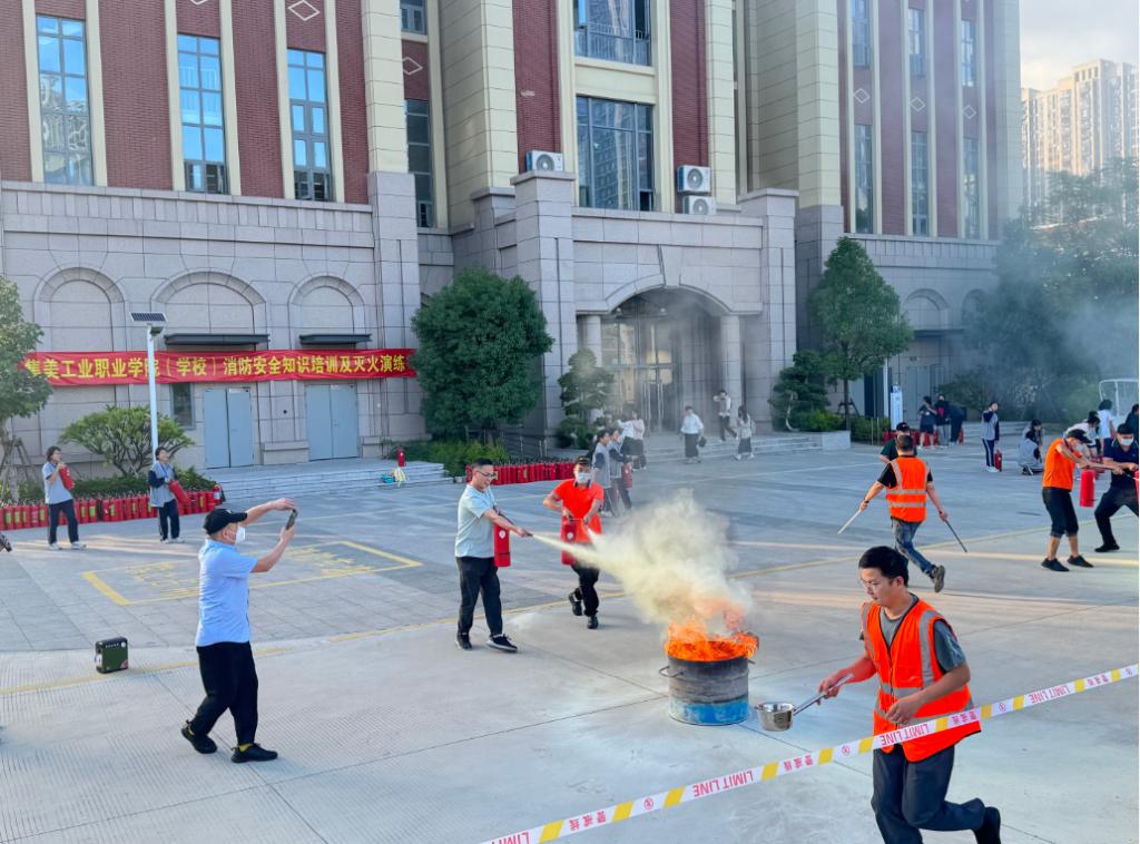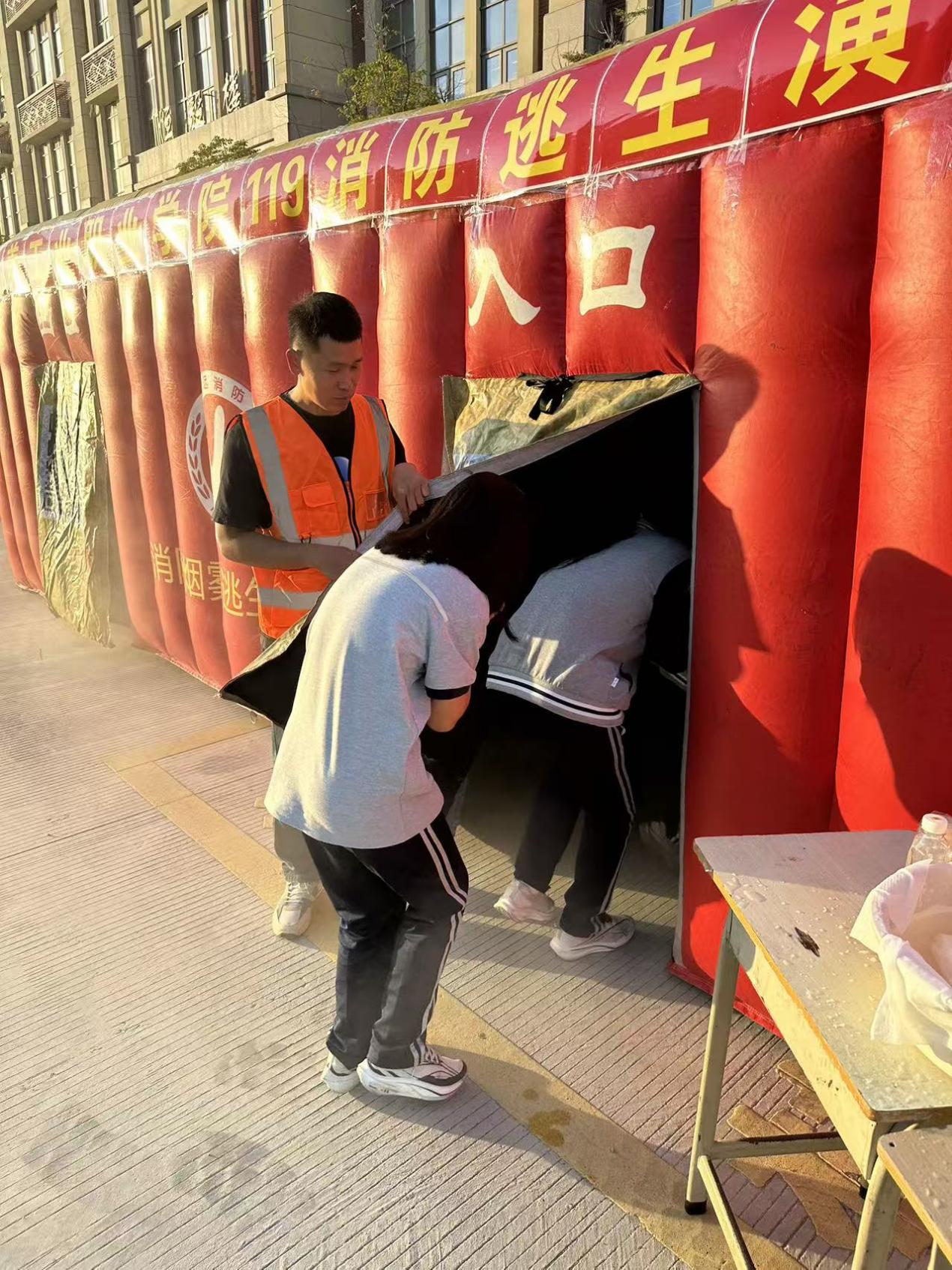 疏散演练结束后,我校特别邀请了第三方消防维保单位的专业人员来校开展消防知识普及、逃生仓体验及灭火器实操培训。2025级学生宿舍宿舍长、宿舍辅导员、新进教师、食堂重点岗位人员以及物业工程人员等纷纷踊跃参与实操演练。