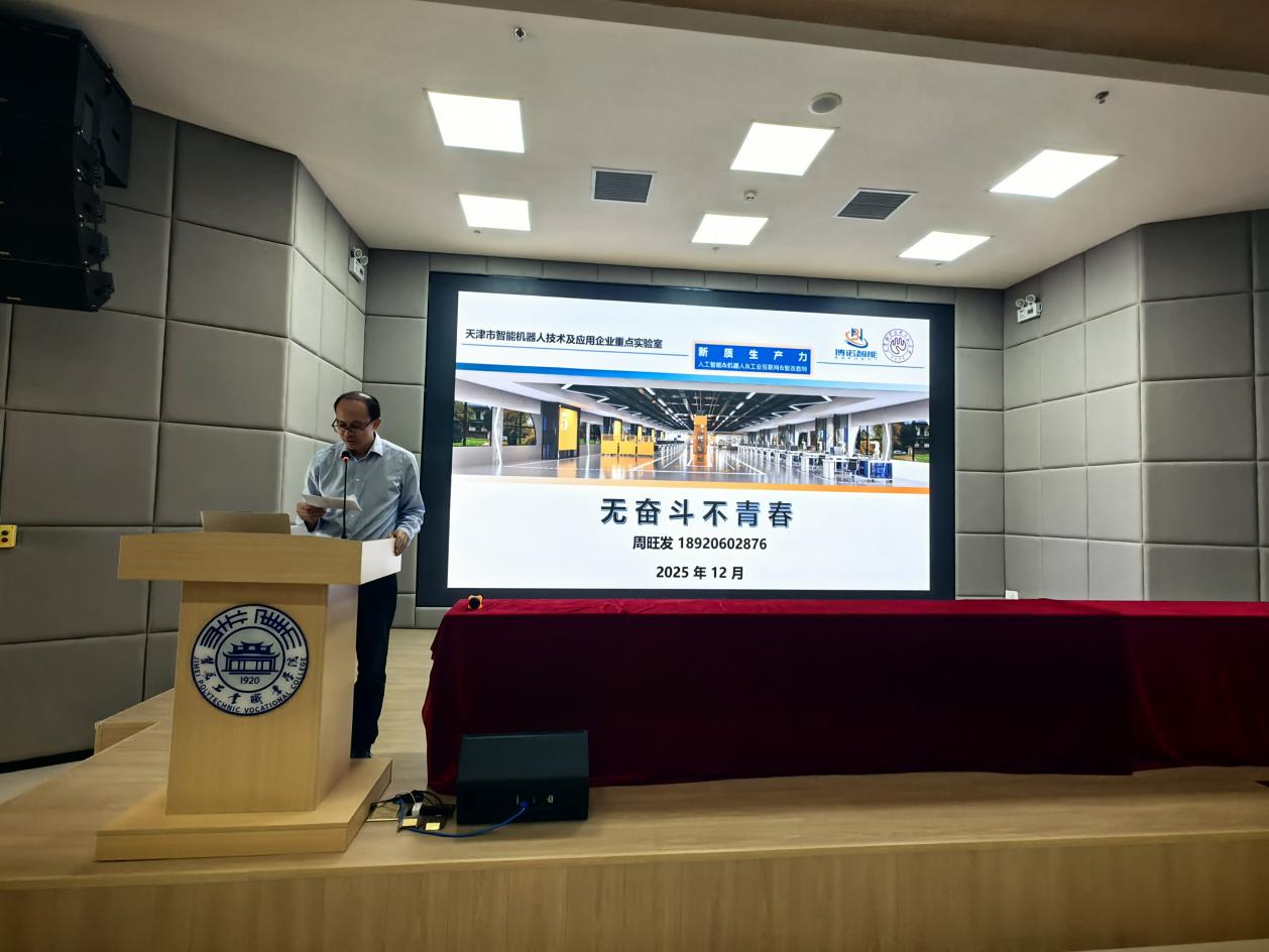 本次讲座嘉宾周旺发,是集“技能专家、企业家、职教导师”于一身的双栖人才:1988年出生的他,是中共党员、高级工程师、电工高级技师,现任天津博诺智创机器人技术有限公司总经理,同时担任天津职业技术师范大学研究生企业导师。