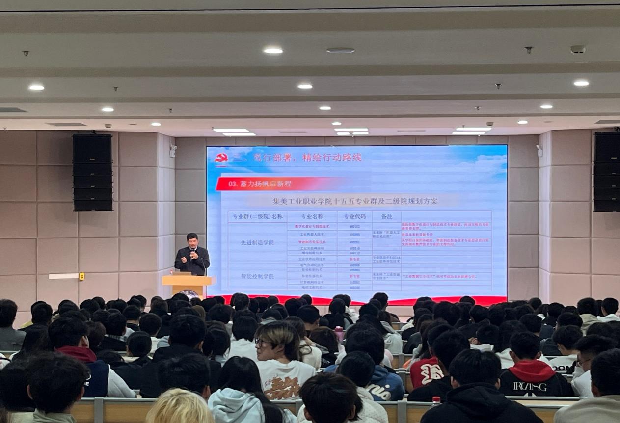 11月24日,赵丽萍书记为先进制造产业系、现代交通产业系的中高职学生代表授课。她深刻阐释了全会关于“构建现代化产业体系”“发展新质生产力”的战略部署与高职人才培养的内在契合,勉励学子立志成为“中国智造”的生力军和福建先进制造业升级的“本土力量”。赵书记指出,未来五年是青年成长与国家发展同频共振的“黄金期”,全会擘画的发展蓝图为青年施展才华提供了广阔舞台。她殷切期望广大学子把握战略机遇,将个人理想融入强国伟业,以实干笃行践行全会精神,在2035年基本实现社会主义现代化的壮丽征程中镌刻下闪亮的青春印记。