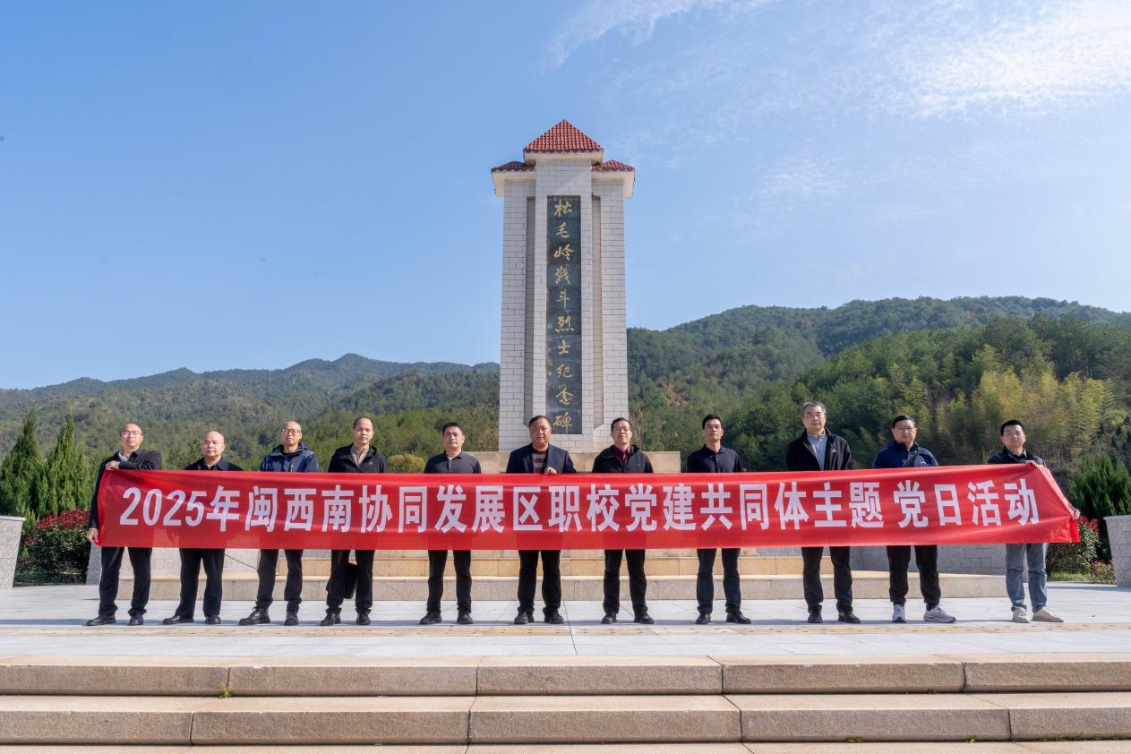 18日的主题党日活动中,共同体成员赴红军长征第一村中复村、长汀水土保持科教园及松毛岭烈士纪念碑开展现场教学。通过聆听红色事迹,深刻感悟苏区人民的革命牺牲与奉献精神;实地考察水土保持科教园,深入理解“绿水青山就是金山银山”理念在长汀的生动实践与显著成效;在松毛岭烈士纪念碑前,深切缅怀革命先烈的不朽功绩。现场教学不仅是一次精神的淬炼,更成为校际深化合作的“桥梁”,为共同体后续开发跨区域红色研学线路、共建产教融合实训基地奠定了坚实基础。
