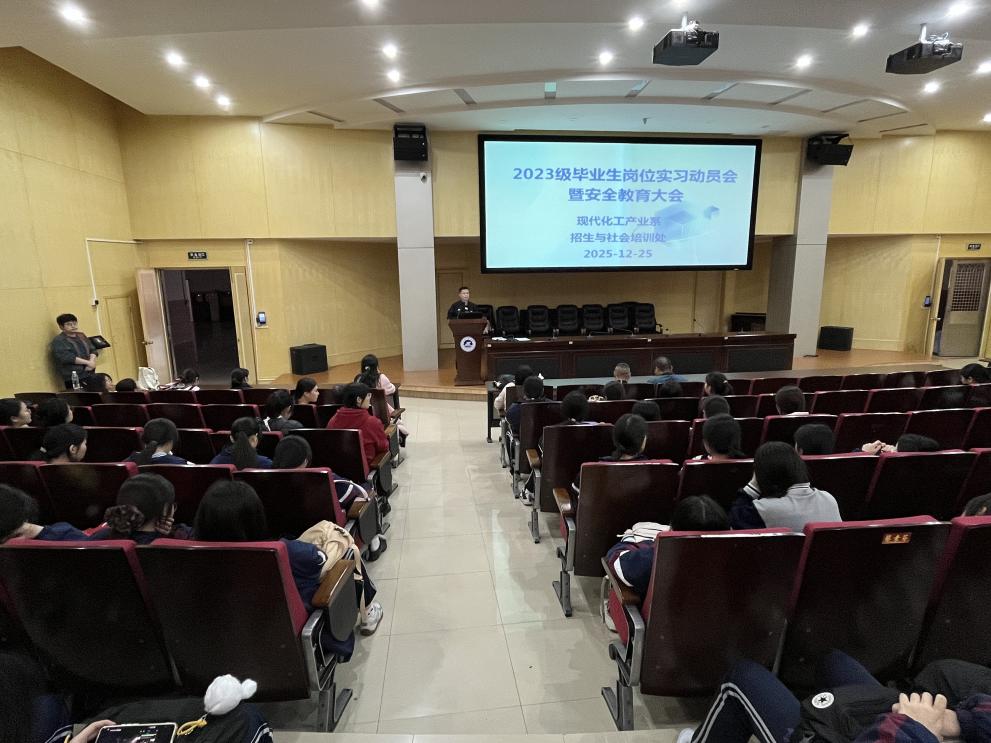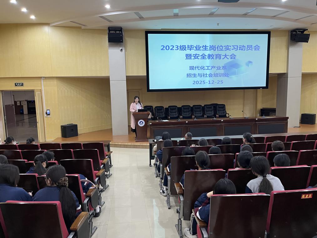 2025年12月25日,现代化工产业系成功举办了本年度23级学生岗位实习工作会议,为即将踏上实习征程的学子们指明了方向,注入了动力。此次会议由系主任吴群明与副主任刘燕頔共同组织,不仅汇聚了23级班主任、实习指导老师及全体同学,还邀请了招生与社会培训处许雪琴老师,共同为学子们的实习之路保驾护航。